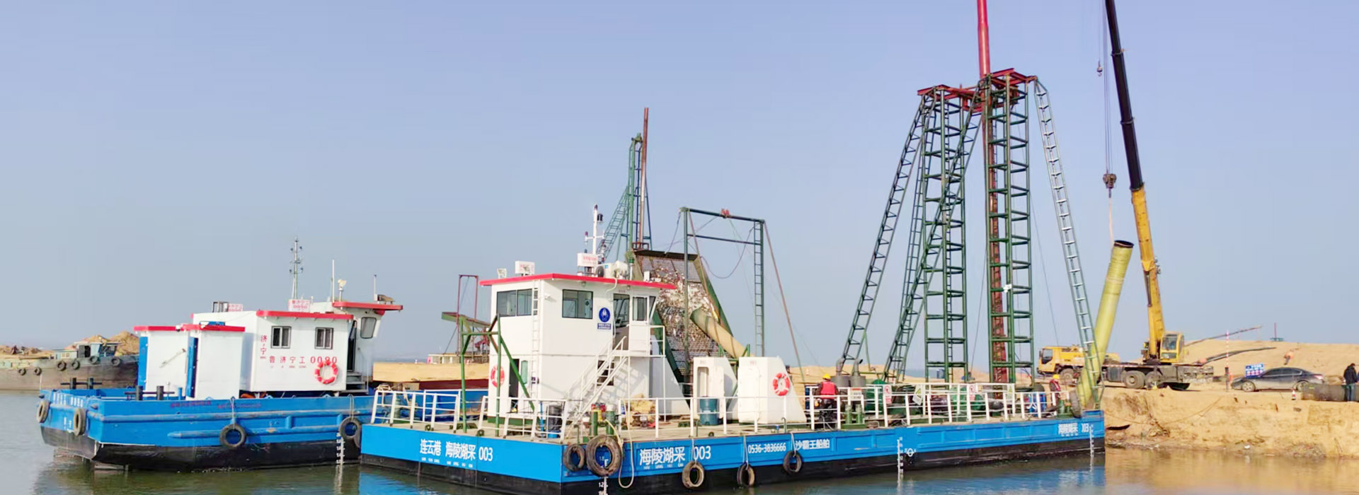 抽沙船也稱作吸沙船,是利用吸沙泵作為取沙主要部件,利用吸沙泵的吸力把水下的河沙或污泥吸引而上后由上排沙管排到指定位置。此機械適用于水庫,大江大河,人工湖,沿海港口的清淤和取沙工程。